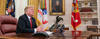 President Trump sits in the Oval Office
